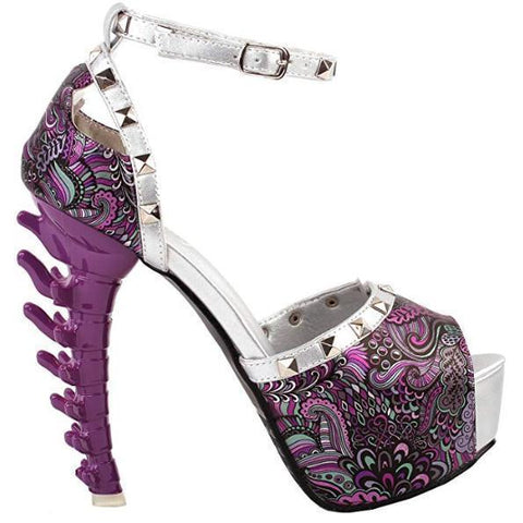 Rock the red carpet, or stand out at that upcoming rock concert in these edgy chic` high heel dress pumps! These pull on black peep toe stilettos have a zippered alternative design, and silver hardware. Grab your best dress and make these Gothic dress shoes a fun conversation piece. Whether your dancing at a night club or attending a wedding these stylish stilettos are comfortable and durable, the perfect addition to any closet. Hurry before they are gone!
